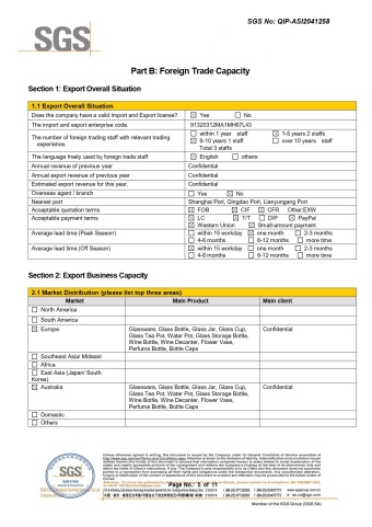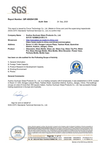 En 2016, Xuzhou Suchuan Glass Products Co., Ltd. fue establecido y designado como una empresa de comercio exterior. Los productos se exportan a Australia, Estados Unidos, Brasil, Japón, Corea del Sur, el sudeste asiático ... ¡esforzándose por crear el modelo B2B! Principalmente involucrado en jarrones, botellas, botellas de perfumes, latas, botellas de bebidas, botellas de cosméticos, tazas y negocios de procesamiento profundo. El material de la botella de vidrio se divide en material blanco general, material blanco alto, material blanco de cristal, altos materiales de borosilicato cuatro, elegiremos el material más adecuado según las necesidades de los clientes.